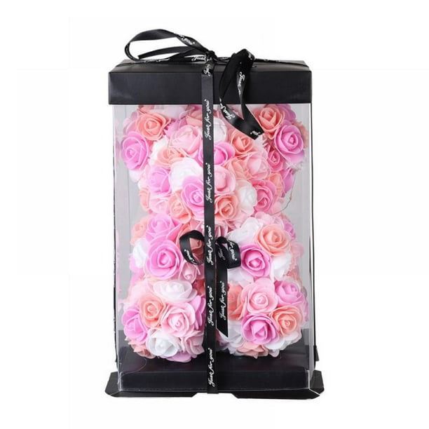 10 Rose Bear With Led Hand Made Rose Teddy Bear Flower Bear Perfect For Mothers Day Valentines Day Birthday Anniversary Weddings W Clear Gift Box Pink And White Walmart Com